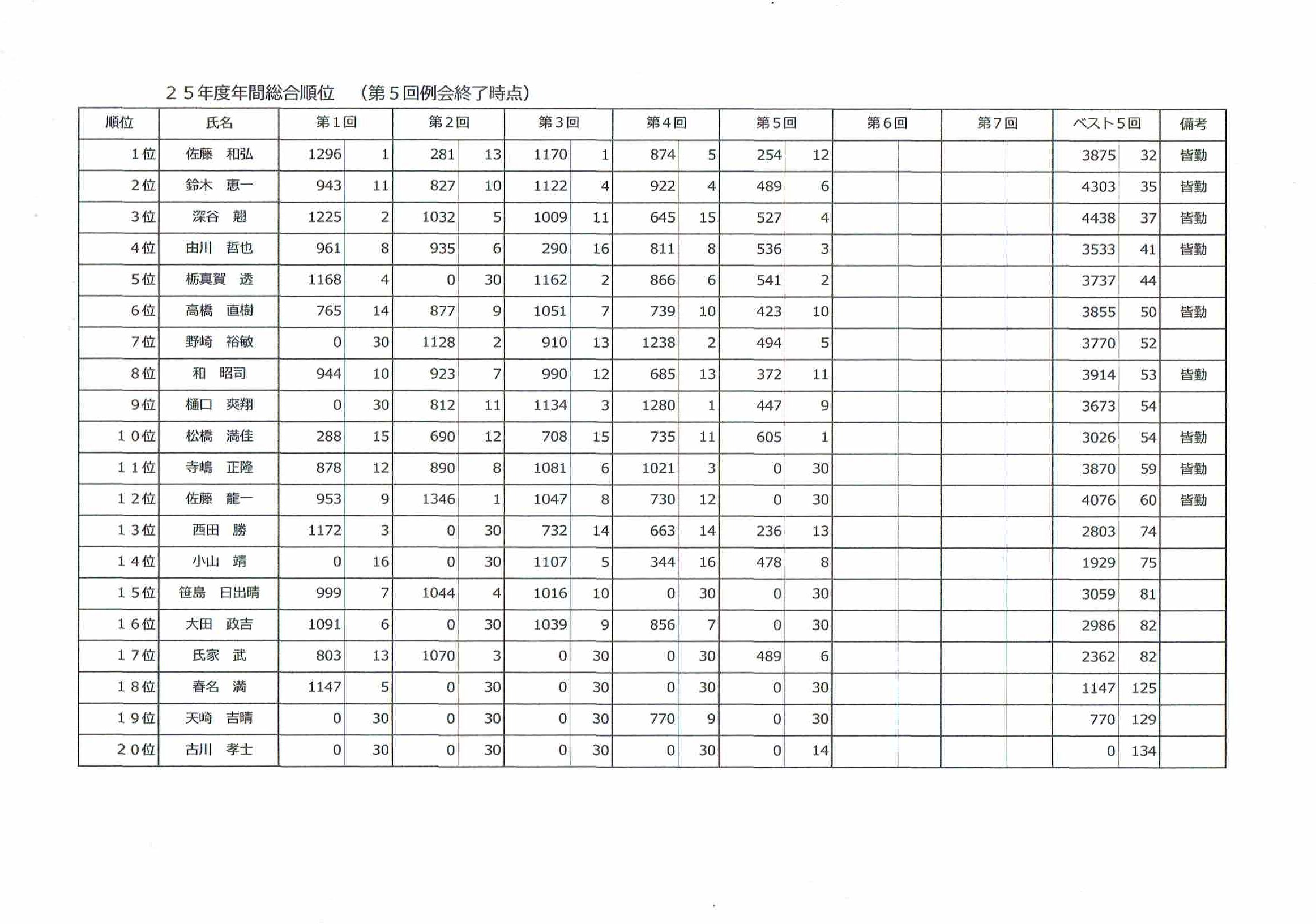 第5回例会成績速報です