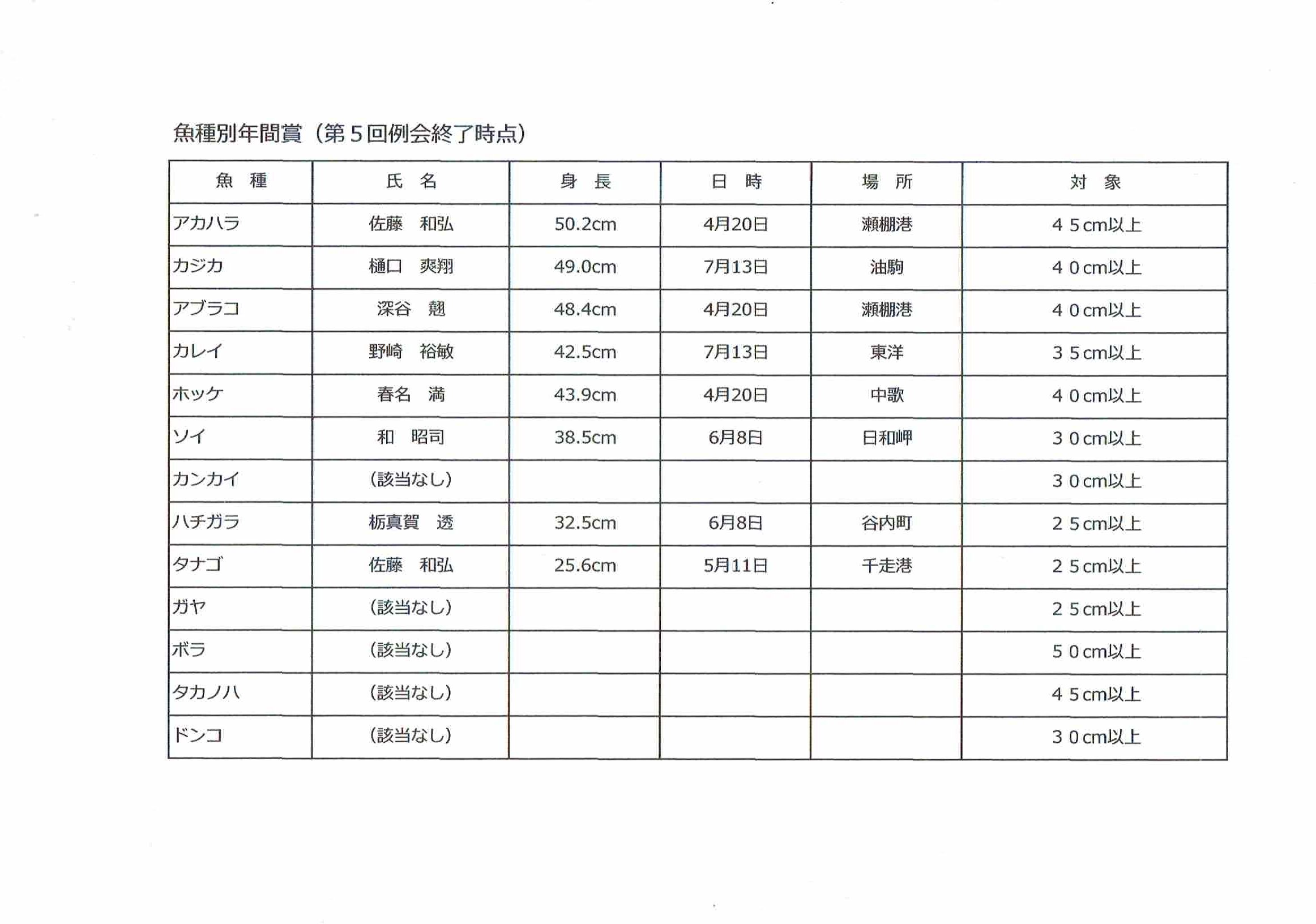 4位 深谷 翹 527 90 437 アカハラ 0 – 豊浦港 身長優勝