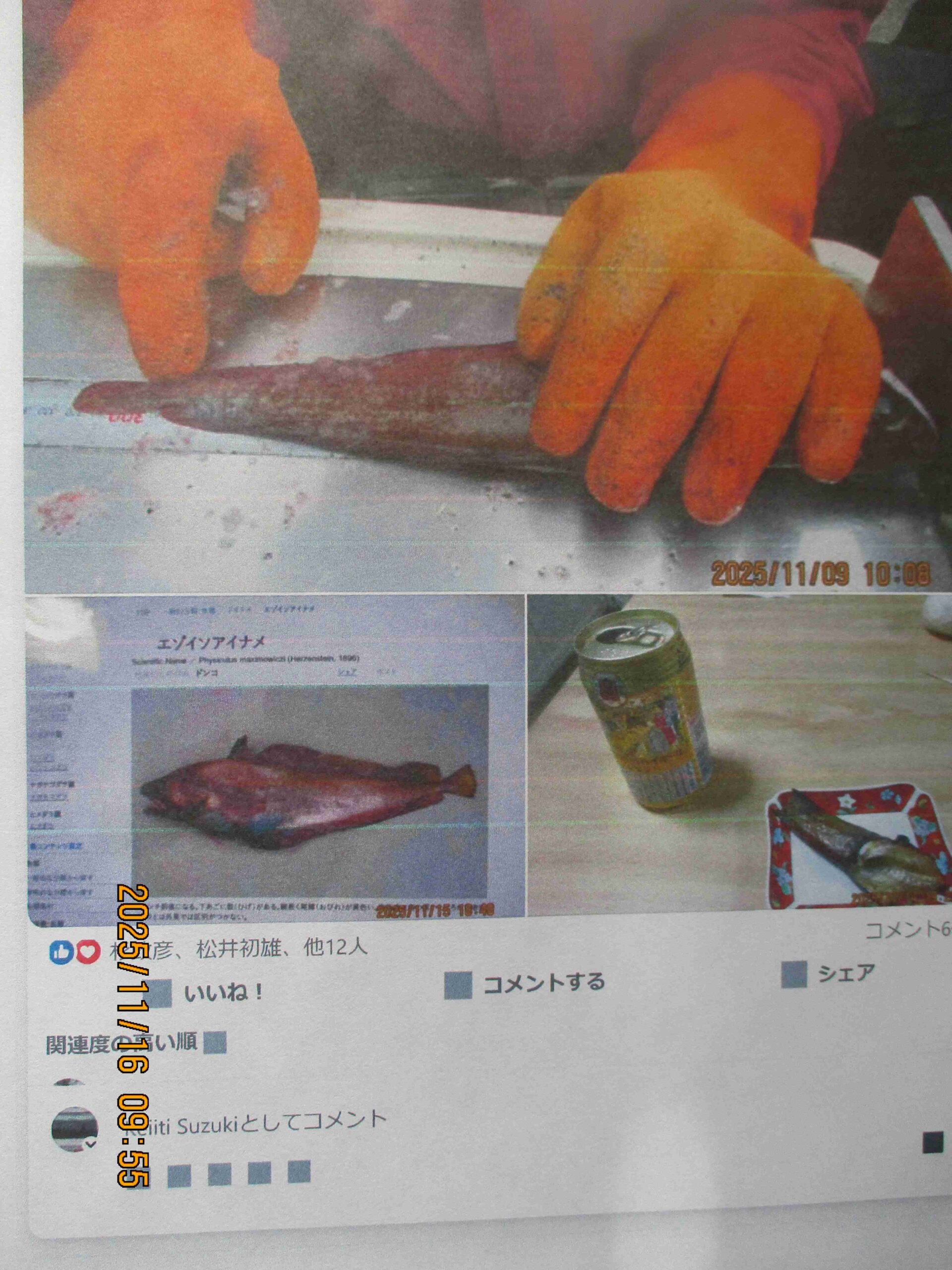 皆さん、10月例会はカジカの大漁でしたね。私は入釣場所(様似港)に失敗し、ガヤの散発でブービーでした。次回は型物のカジカを揃えたいと思っています。帰宅後に初めてガヤを刺身にしましたが、肉厚でとても美味しかったです。